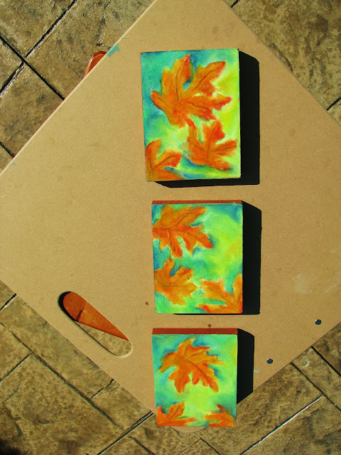 "Fall-ing Leaves"  pastels and oil paints that are water soluble work well together